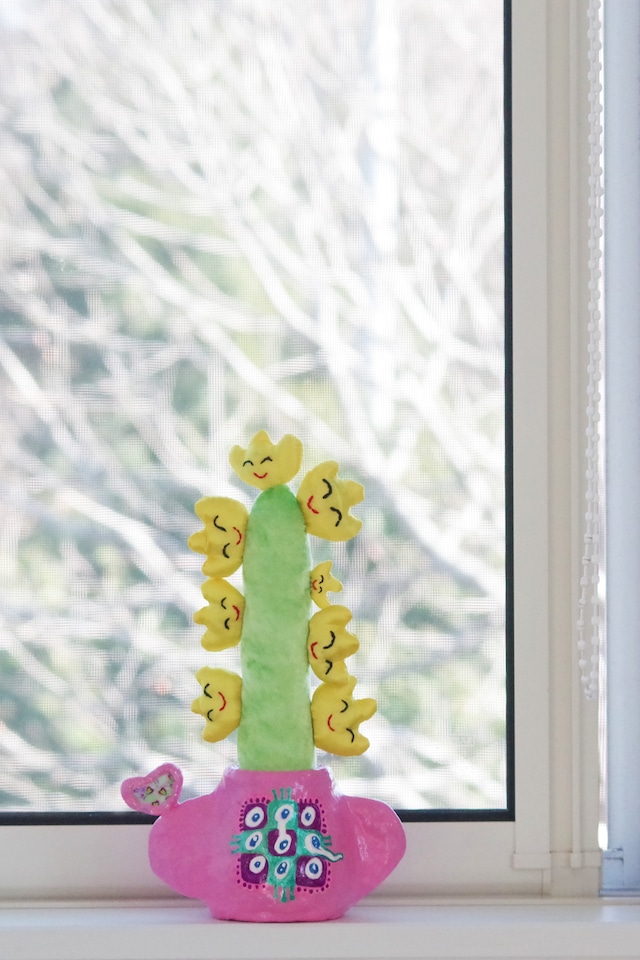 窓辺にワクワクを~シリーズは2018年程に誕生した人気のお花です(*^-^*) 【PRESS ON/OFF】 PRESS ONとは 「困難があっても前進し続ける」 PRESS OFFはその逆です。 PRESS OFFは一見ネガティブに感じる方もいるかもしれません。 しかし、ワクワク星人達はHAPPYでいる為には「困難に直面した場合前進し続けない。」 選択をすることも必要だ。 一番大事なことは「全て自分で選択したのだ」という意思である。 ということを重んじています。 生きるというのは小さな選択の積み重ねです。 その精神を窓辺に置いて、日々を大切に送ってね♡ MAKE THE HAPPY!!! size/h25㎝・w13㎝・d6.5㎝ 素材/ 布・粘土・綿・糸で形作られたお花は樹脂でコーティングしています。 壺部分は陶器で造られたものに、軽量紙粘土で覆い、更に樹脂コーティングを施しています。 注意/ ☆届いて数日はニスのニオイがすることがあります。 その場合は大変お手数ですが、天候が良い日に窓を開け、日光の当たる場所へ 2~3日(合計12時間程)、置いていただくと比較的早くニオイが取れます。 ☆直射日光にはも耐えうる創りではありますが、より長くお過ごしいただくには、 ニオイがとれた場合、直射日光を避けていただくと より長く一緒に過ごすことが出来ます★ 発送の目安/ 出来る限りのHAPPYを込めてご用意させていただく上で、2~3日お時間をいただきます。何卒宜しくお願い致します