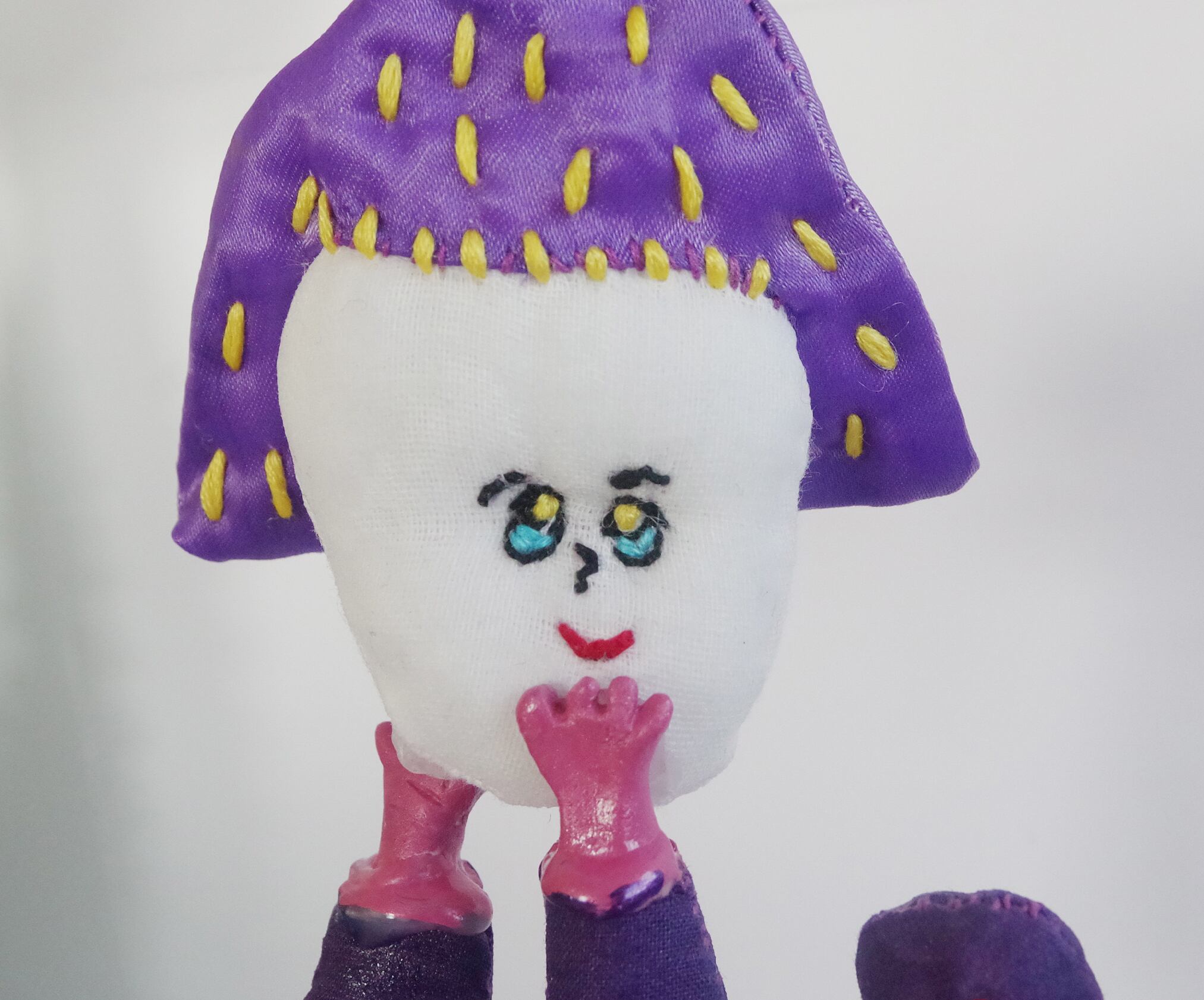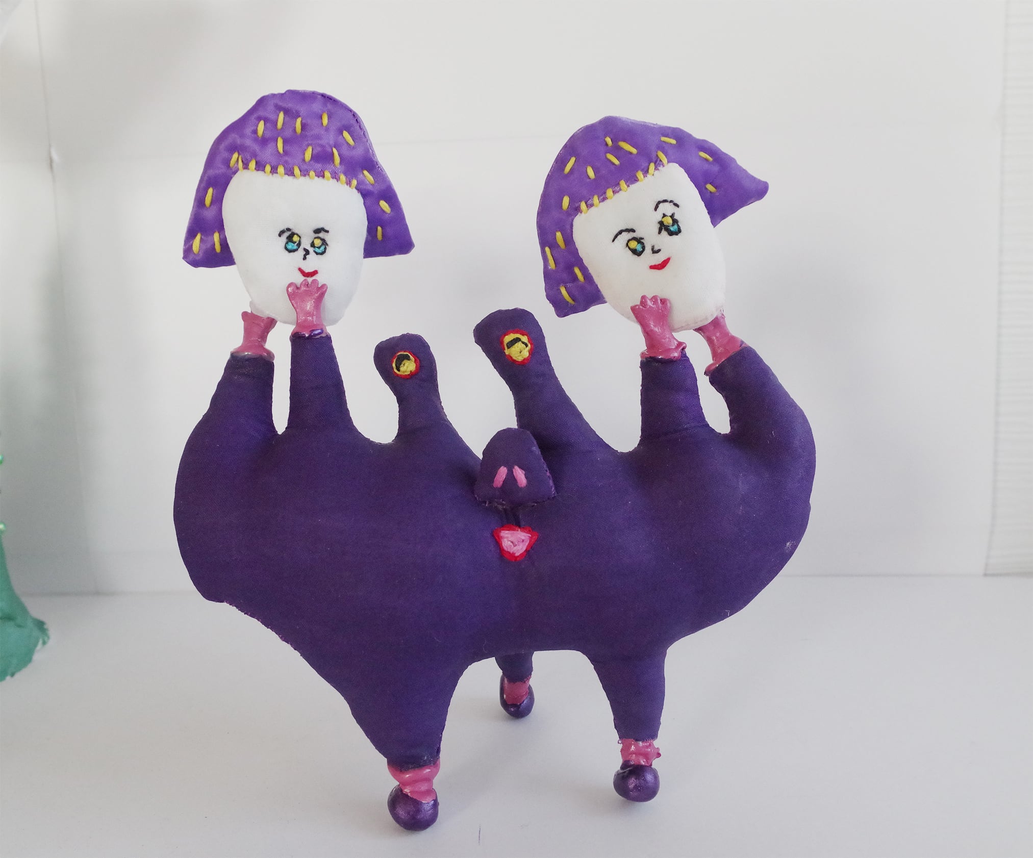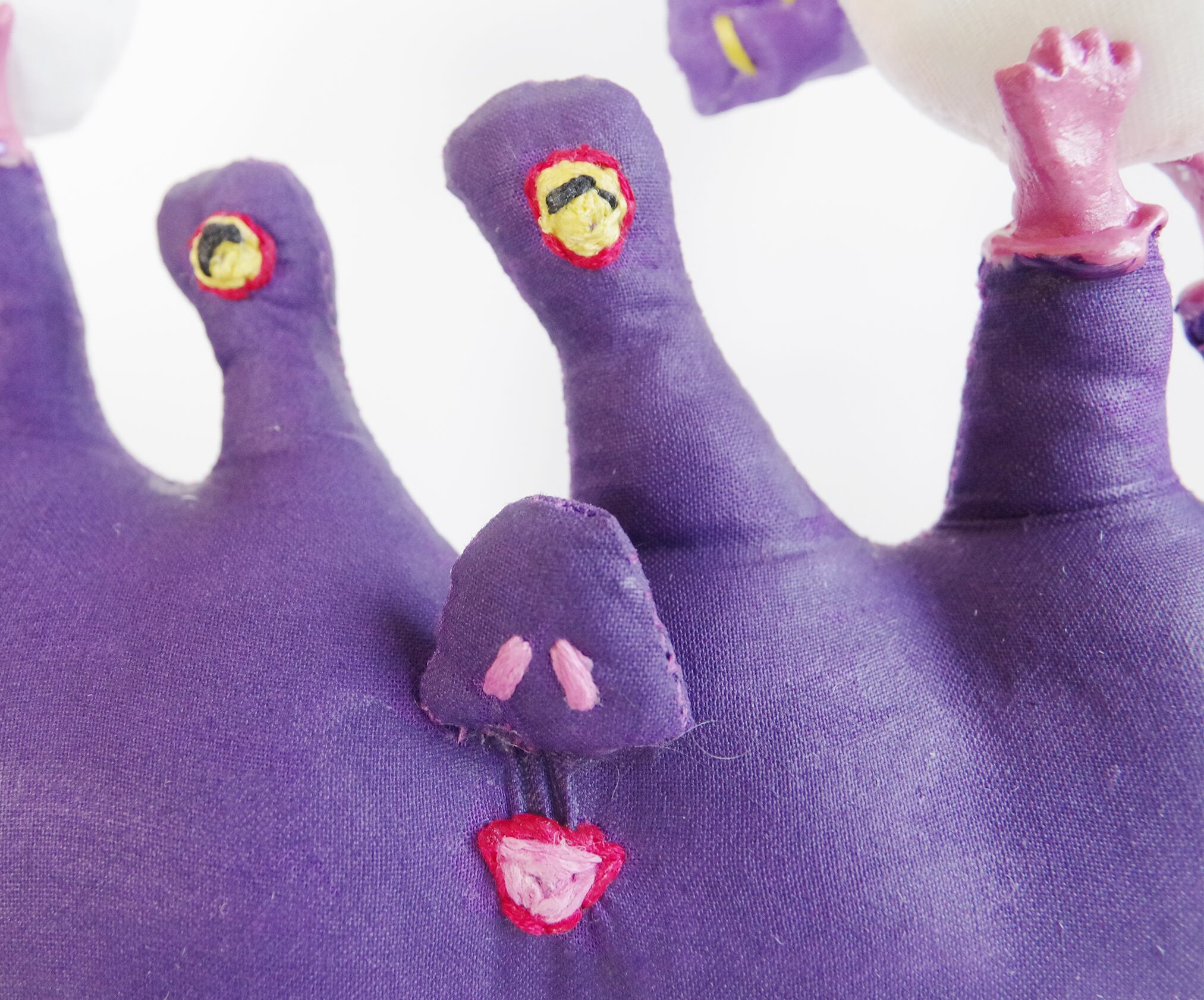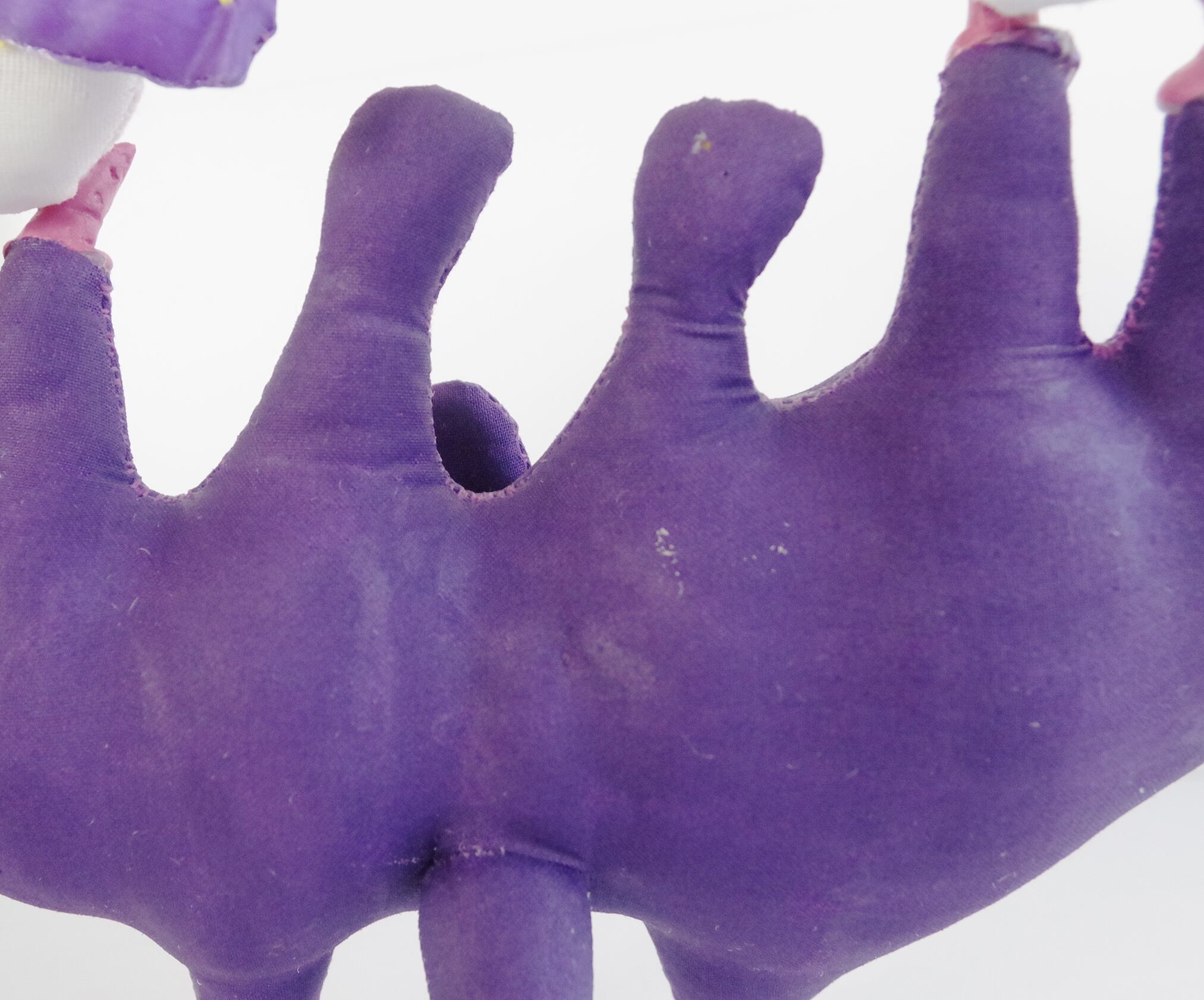 一見手縫いの布の人形に見えますが、実は布の上からコーティングを施し、