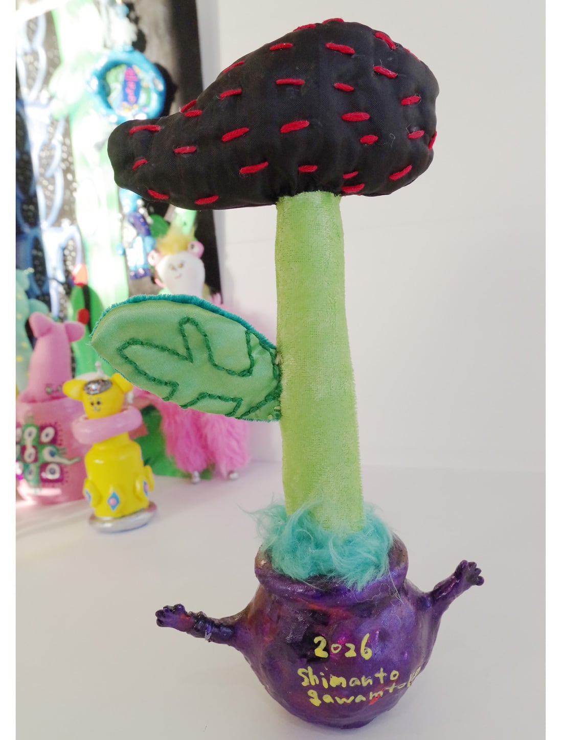 布・粘土・綿・糸で形作られたお花は樹脂でコーティングしています。